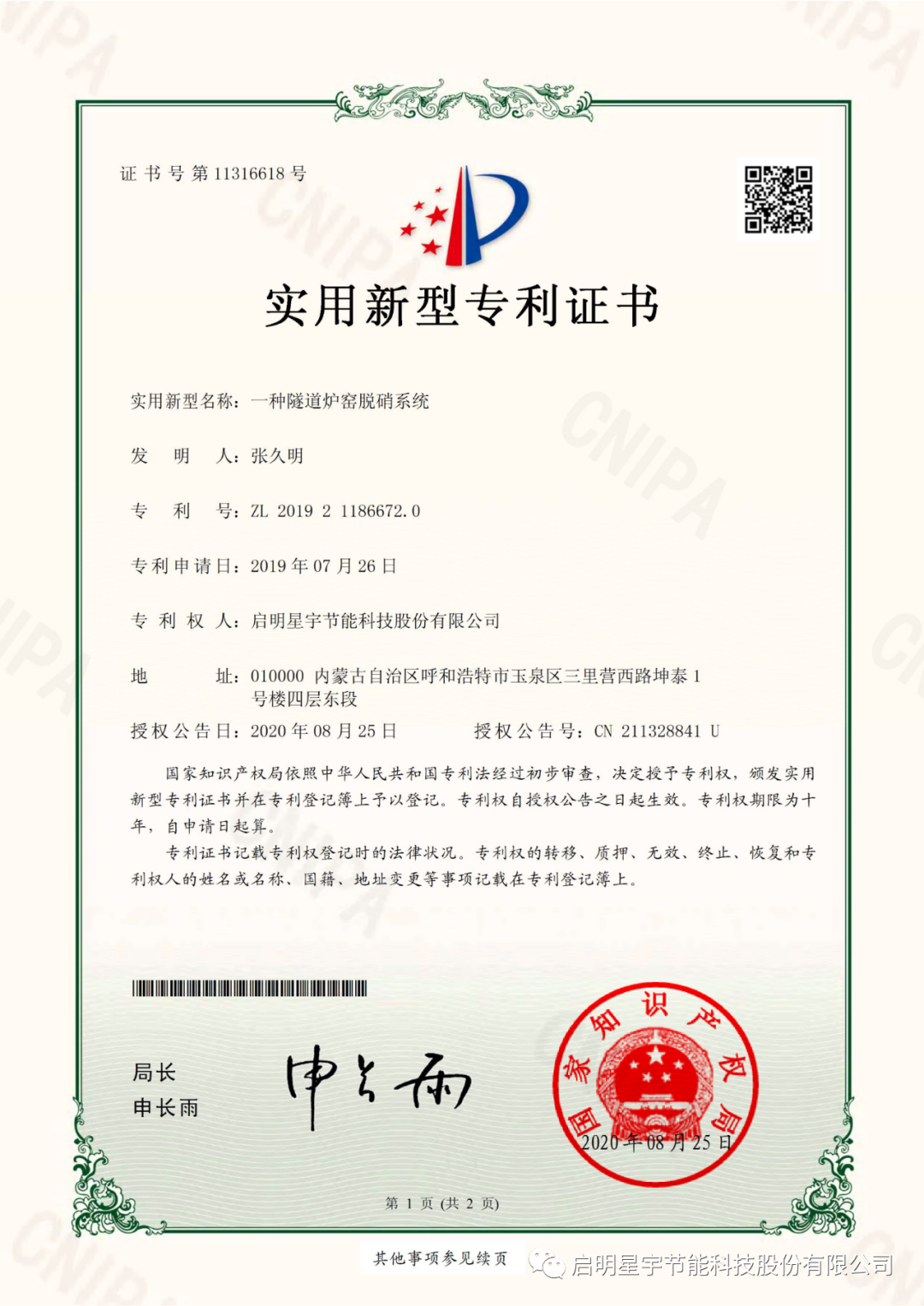 新年巨著,啟明星宇節(jié)能科技股份有限公司《工業(yè)廢氣零排放技術(shù)研究》科研論文在《中國(guó)科技人才》期刊成功發(fā)表