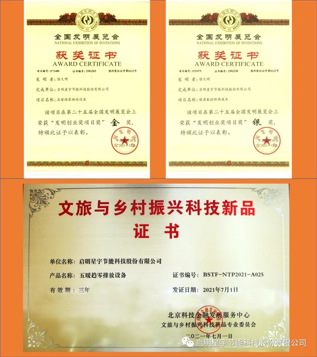 啟明星啟明星宇節(jié)能科技股份有限公司,2024年產(chǎn)品研發(fā)獲獎匯報(bào)